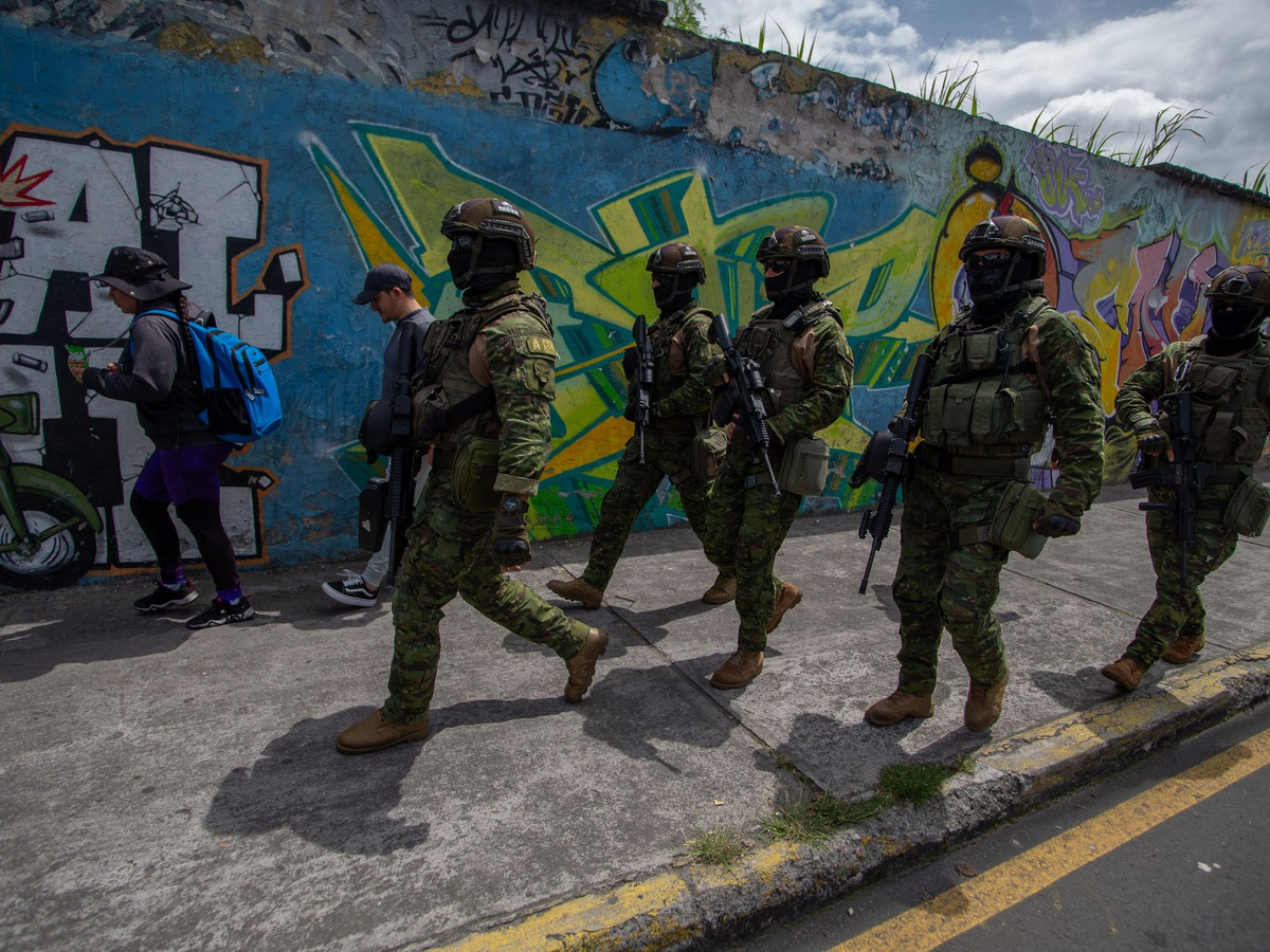 Nachdem Bewaffnete am Dienstag wĂ€hrend einer live ĂŒbertragenen Nachrichtensendung ein Studio des staatlichen Fernsehsenders TC TelevisiĂłn gestĂŒrmt und zahlreiche Geiseln genommen hatten, schickte die Regierung die StreitkrĂ€fte in den Kampf gegen die Gangs. PrĂ€sident Daniel Noboa erklĂ€rte per Dekret, dass sich Ecuador in einem internen bewaffneten Konflikt befinde. Er deklarierte 22 kriminelle Gruppen als terroristische Organisationen und nicht-staatliche Kriegsparteien, die auszuschalten seien.