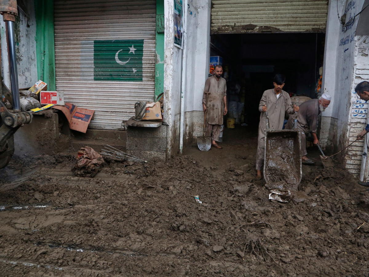 In Pakistan liegt die Zahl der Toten laut einem Sprecher der nationalen Katastrophenschutzbehörde nunmehr bei über 300. Am stärksten betroffen ist der Distrikt Buner in der nordwestlichen Provinz Khyber Pakhtunkhwa, in der sich Rettungskräfte nach einem heftigen Wolkenbruch bemühen, weitere Lebende zu finden und Leichen aus Trümmern und Schlamm zu bergen. Am Freitag waren fünf Rettungskräfte bei dem Absturz ihres Hubschraubers gestorben.