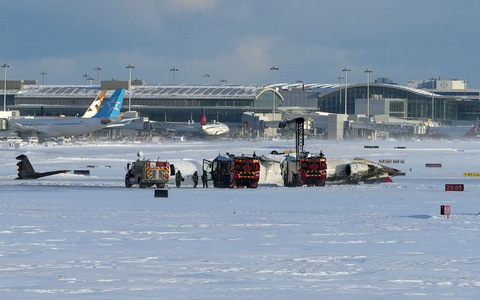 Im Netz kursierte ein offensichtlich von einem Augenzeugen aufgenommenes Video, das aus einer offenen Flugzeugtür ins Freie tretende Menschen und ein Löschfahrzeug der Feuerwehr zeigt, welches die havarierte Maschine mit Wasser besprüht. Eine Stimme in dem Video sagt: «Wir sind in Toronto, wir sind gerade gelandet, unser Flugzeug ist abgestürzt, es liegt kopfüber, die Feuerwehr ist vor Ort.»