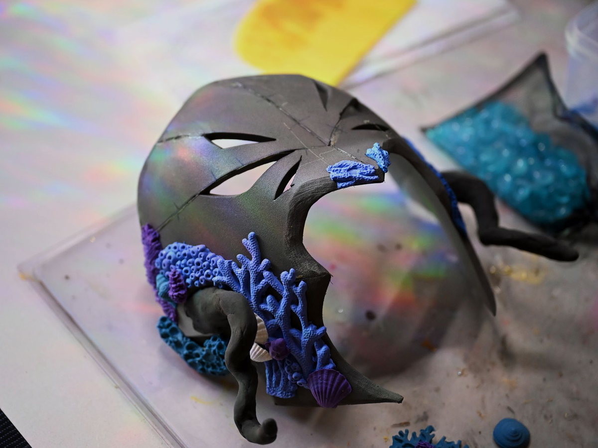 Die Utensilien für ihre Basteleien haben sich bei ihr über die Jahre angesammelt: Zahlreiche Pinsel, Stifte und Scheren stehen neben ihrem Arbeitstisch. Ob Ornamente aus Epoxidharz oder Masken aus einer leichten Modelliermasse: Toni fertigt fast alles in Kleinstarbeit per Hand an - wie viele andere Cosplayer. «Bei mir ist es halt so, dass ich eher Nischensachen mache», sagt Toni. «Ich muss fast alles selber machen, weil es das nicht zu kaufen gibt.»