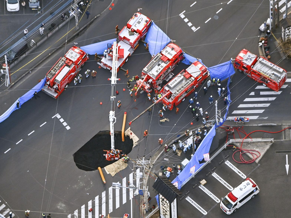 28.01.2025 - 14:39:48 | dpa.deEin Lastwagen ist nördlich von Tokio auf einer Kreuzung in ein zehn Meter breites und sechs Meter tiefes Erdloch gestürzt. Weshalb die Straße an der Stelle einbrach, ist noch unklar. Ein Mann, vermutlich der Fahrer, sei bei dem Vorfall in Yashio in der Präfektur Saitama eingeklemmt worden, berichtete die japanische Nachrichtenagentur Kyodo am Abend (Ortszeit). Der Mann wurde demnach von der Feuerwehr gerettet. Er ist dem Bericht zufolge bei Bewusstsein. Zwei Rettungskräfte seien bei dem Einsatz verletzt worden.
