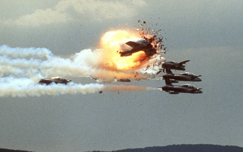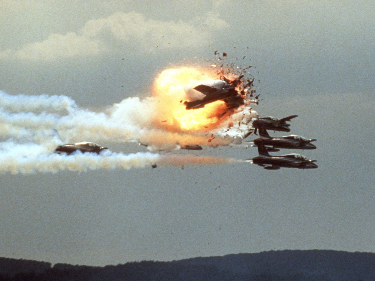 Bei dem Flugtagunglück auf der US-Airbase starben 70 Menschen, etwa 350 wurden schwer verletzt. Es geschah bei der letzten Programmnummer: Drei Flugzeuge der italienischen Kunstflugstaffel «Frecce Tricolori» stießen in rund 40 Metern Höhe zusammen. Eines von ihnen stürzte brennend in die Menschenmenge und explodierte.