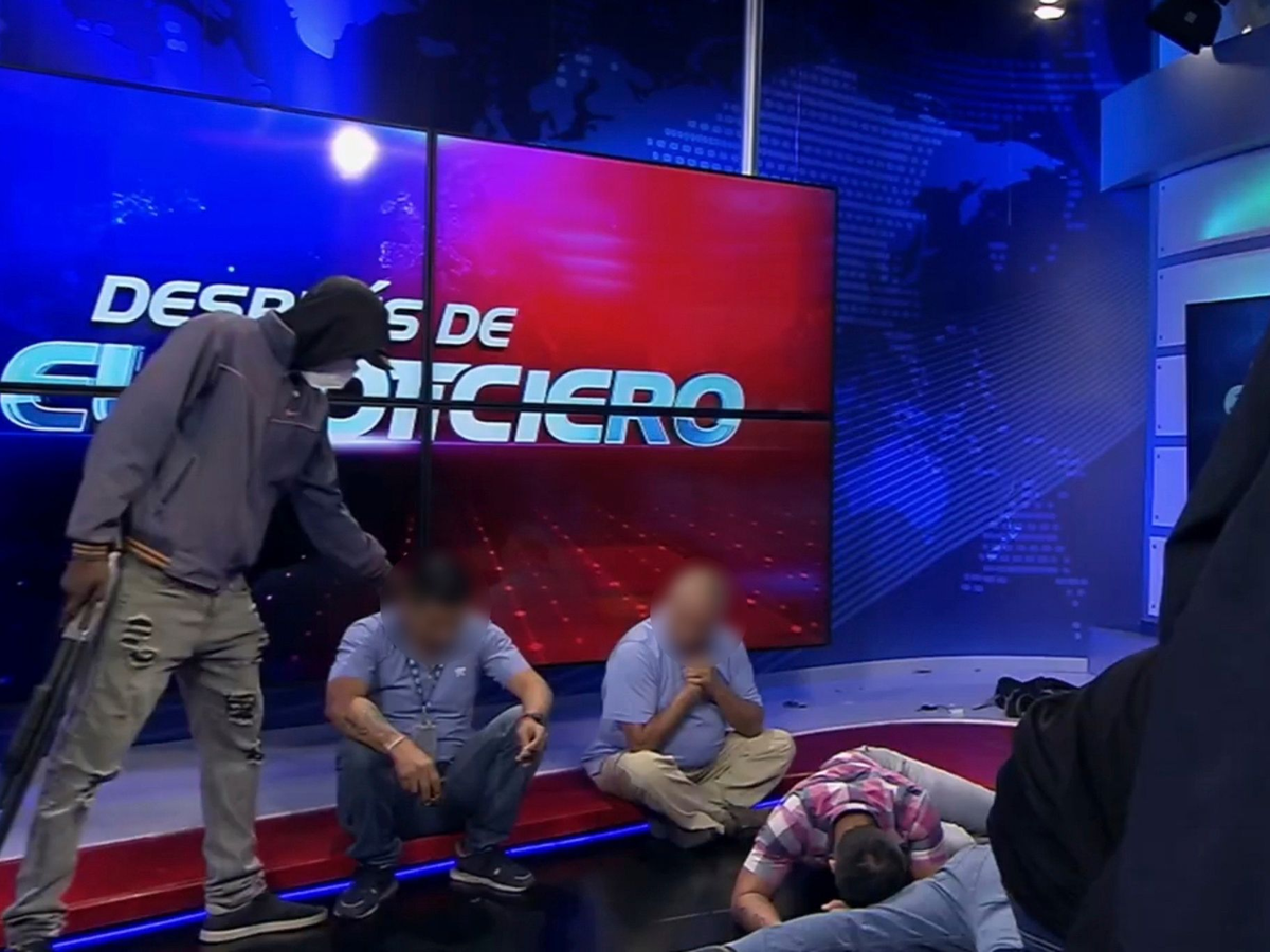 In einer beispiellosen Machtdemonstration waren Bewaffnete wĂ€hrend einer Live-Ăbertragung in die RĂ€umlichkeiten des staatlichen Fernsehsenders TC TelevisiĂłn in der Hafenstadt Guayaquil eingedrungen und hatten mehrere Journalisten und Mitarbeiter als Geiseln genommen. In den Aufnahmen waren SchĂŒsse und Schreie von Menschen zu hören.