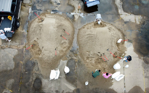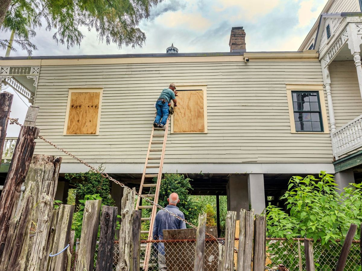 Um Gebäude zu schützen, vernagelten Bewohner die Fenster mit Brettern. Andere füllten Sandsäcke, um Häuser und Straßen gegen die erwarteten Wassermassen abzusichern.