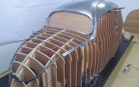 Die Karosserie wurde mit einer Fachfirma von Grund auf neu aufgebaut. Grundlage dafür war eine lebensgroße Zeichnung des Fahrzeugs vom damaligen Audi- und heutigen VW-Chef-Designer Andreas Mindt, die er anhand von Fotos und des Fahrgestells erstellte. «Eine richtige Konstruktionszeichnung war nicht mehr erhalten», erklärt Grundmann.
