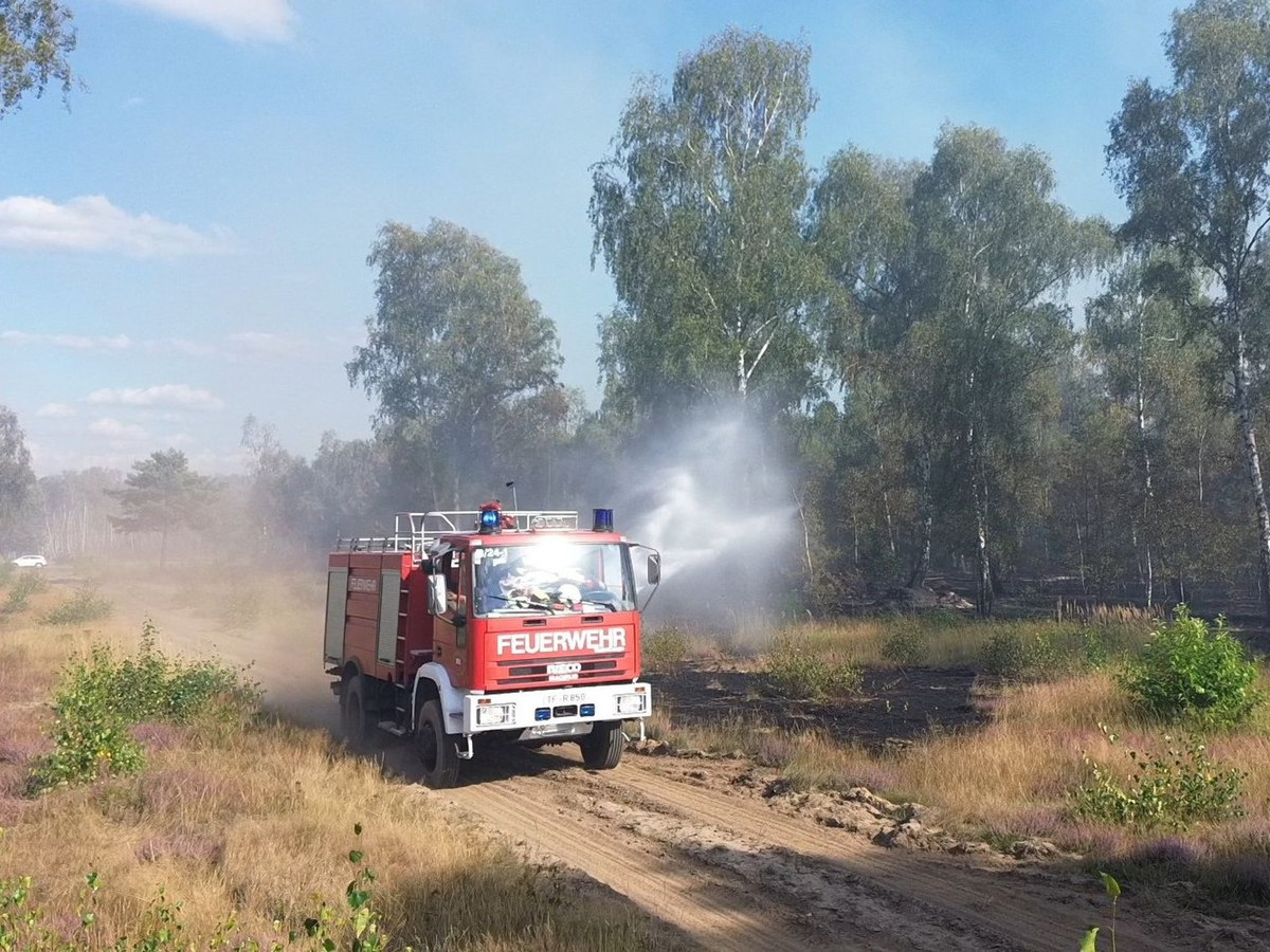 Der Brand war aus bisher ungeklärter Ursache am gestrigen Freitag ausgebrochen und hatte eine Fläche von acht bis neun Hektar erfasst. Wegen alter Munition im Boden sind Löscharbeiten dort erschwert. Feuerwehrleute löschten von sicheren Wegen aus. Am Abend wurde laut Regionalleitstelle ein Löschhubschrauber der Bundespolizei eingesetzt. Das Gelände sei gut befeuchtet worden, hieß es.