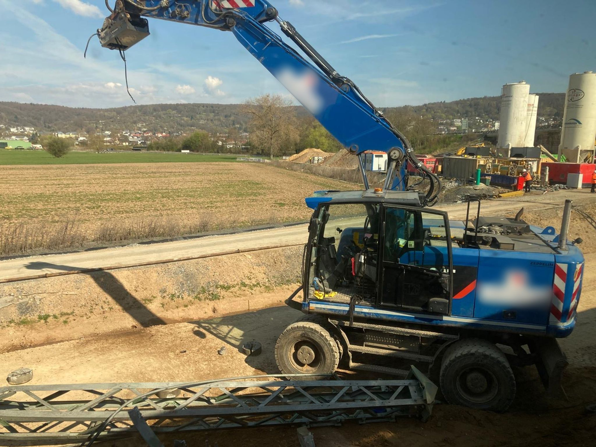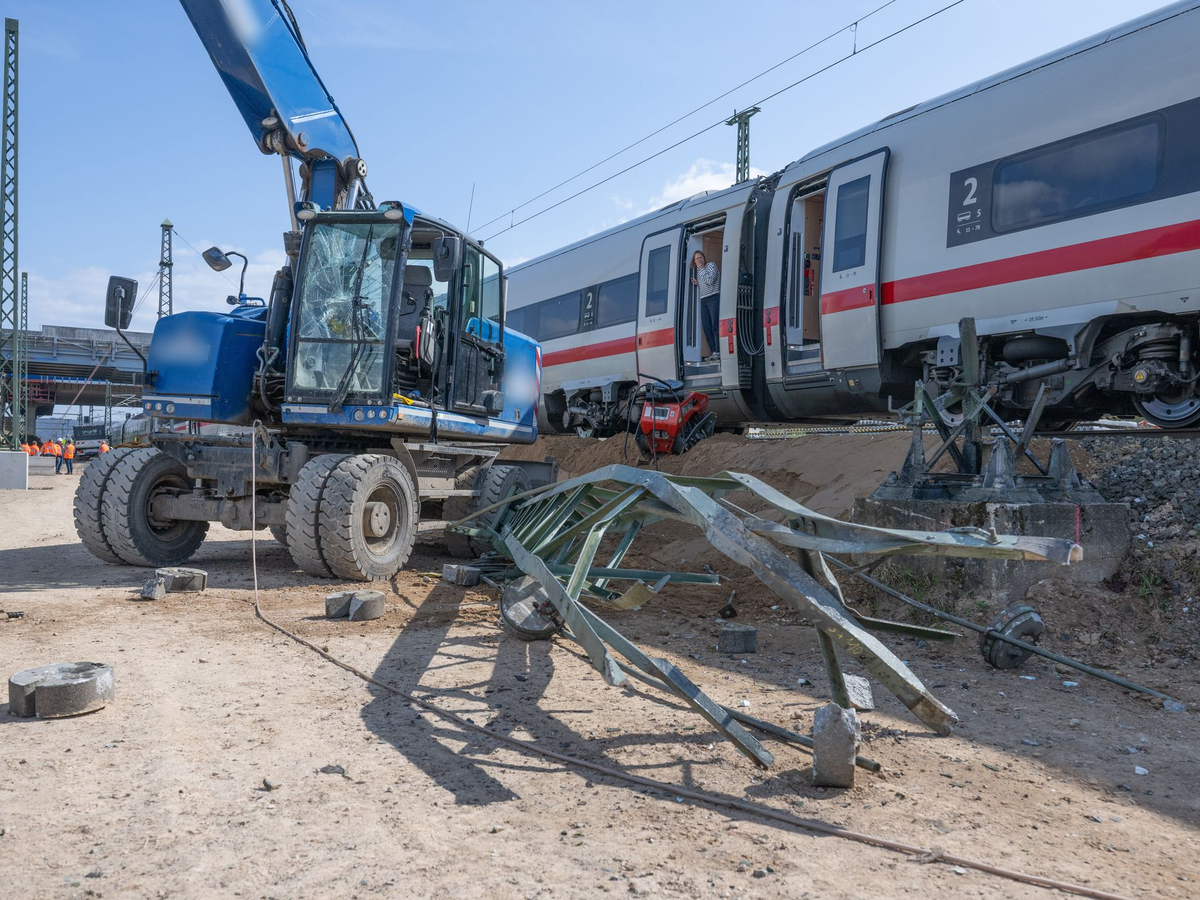 ICE fÀhrt gegen Baggerarm - Baggerfahrer verletzt