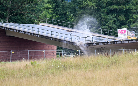 30.07.2025 - 11:06:08 | dpa.deDie marode Brücke der Bundesstraße 45 in Südhessen im Odenwald ist gesprengt. Um 11.01 Uhr krachte das Bauwerk nach Detonationen zusammen. Bei der nach Angaben der Landesbehörde Hessen Mobil rund 116 Meter langen Brücke waren Risse festgestellt worden. Sie wurde für den Verkehr und später auch für die darunter liegende Bahnstrecke gesperrt.
