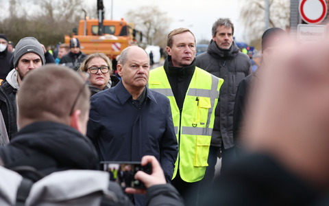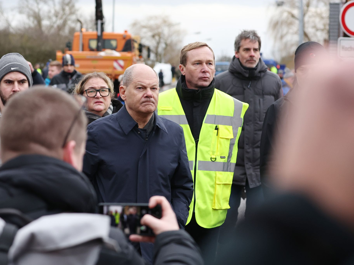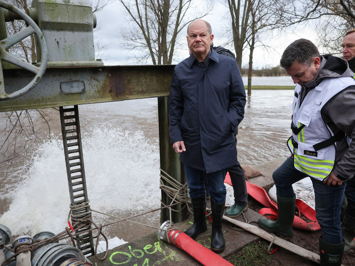 Scholz, Umweltministerin Steffi Lemke (GrĂŒne) und MinisterprĂ€sident Reiner Haseloff (CDU) lassen sich einen zu brechen drohenden Deich zeigen - und hören vor allem zu und stellen Fragen. Sie wollen zum Beispiel wissen, ob genĂŒgend SandsĂ€cke vorrĂ€tig seien.