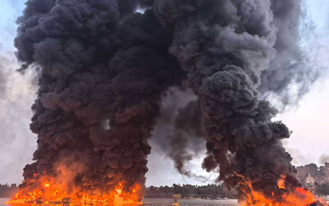 Großbrand in Myanmar: Öltanker setzt Hafen in Flammen