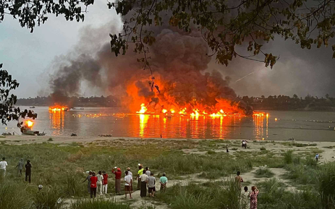 Die Flammen griffen daraufhin schnell auf viele andere Schiffe und Boote sowie auf Fahrzeuge im Hafen über. Das Unglück habe sich am frühen Montagabend (Ortszeit) in Homalin in der Region Sagaing ereignet, teilte die Feuerwehr mit. Auf im Internet verbreiteten Videos war zu sehen, wie eine gewaltige schwarze Rauchsäule in den Himmel stieg.