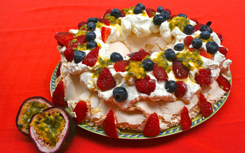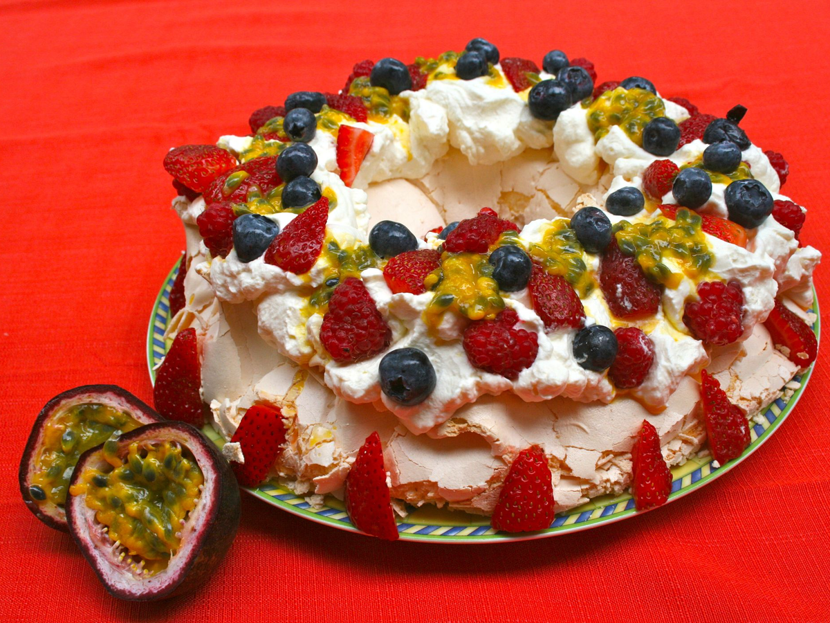 Pavlova - eine mit Sahne und Früchten gefüllte Torte aus Baisermasse - gilt als Down-Under-Dessert. Es wurde nach der russischen Ballerina Anna Pawlowa (1881–1931, auf Englisch: Pavlova) benannt. Sie tourte in den 1920er Jahren in der Weihnachtszeit durch das sommerlich heiße Australien und Neuseeland.