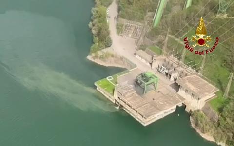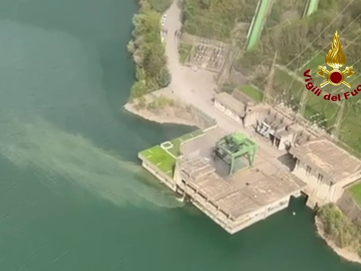 • Das Wasserkraftwerk am Stausee von Suviana nach einer Explosion. - Foto: vigili del fuoco/dpa