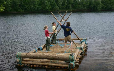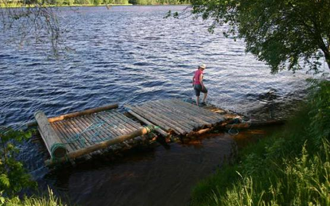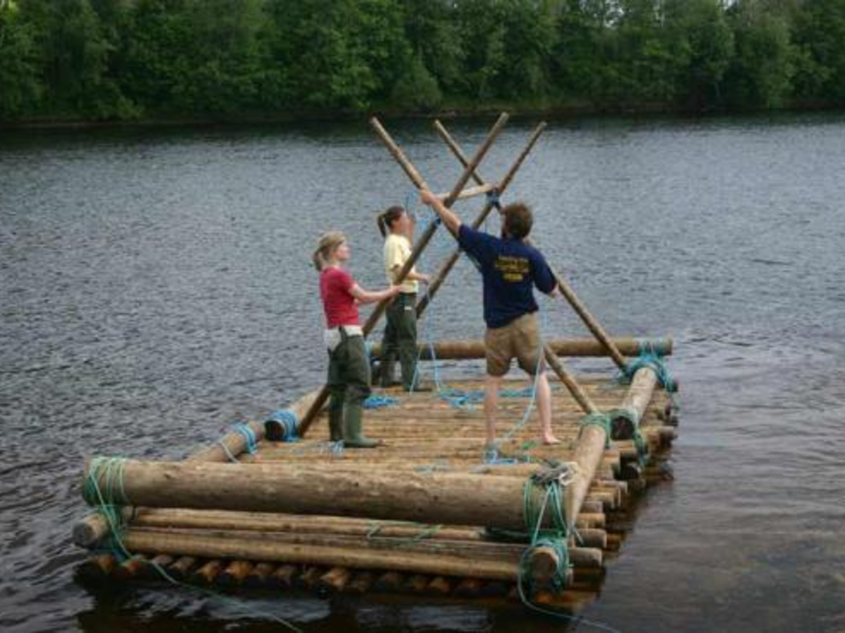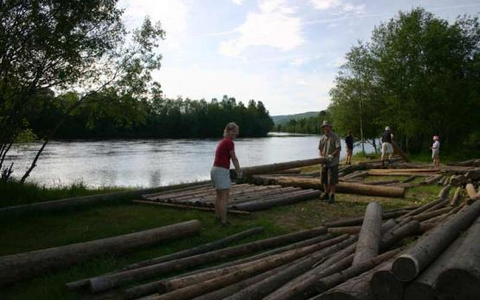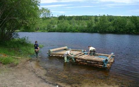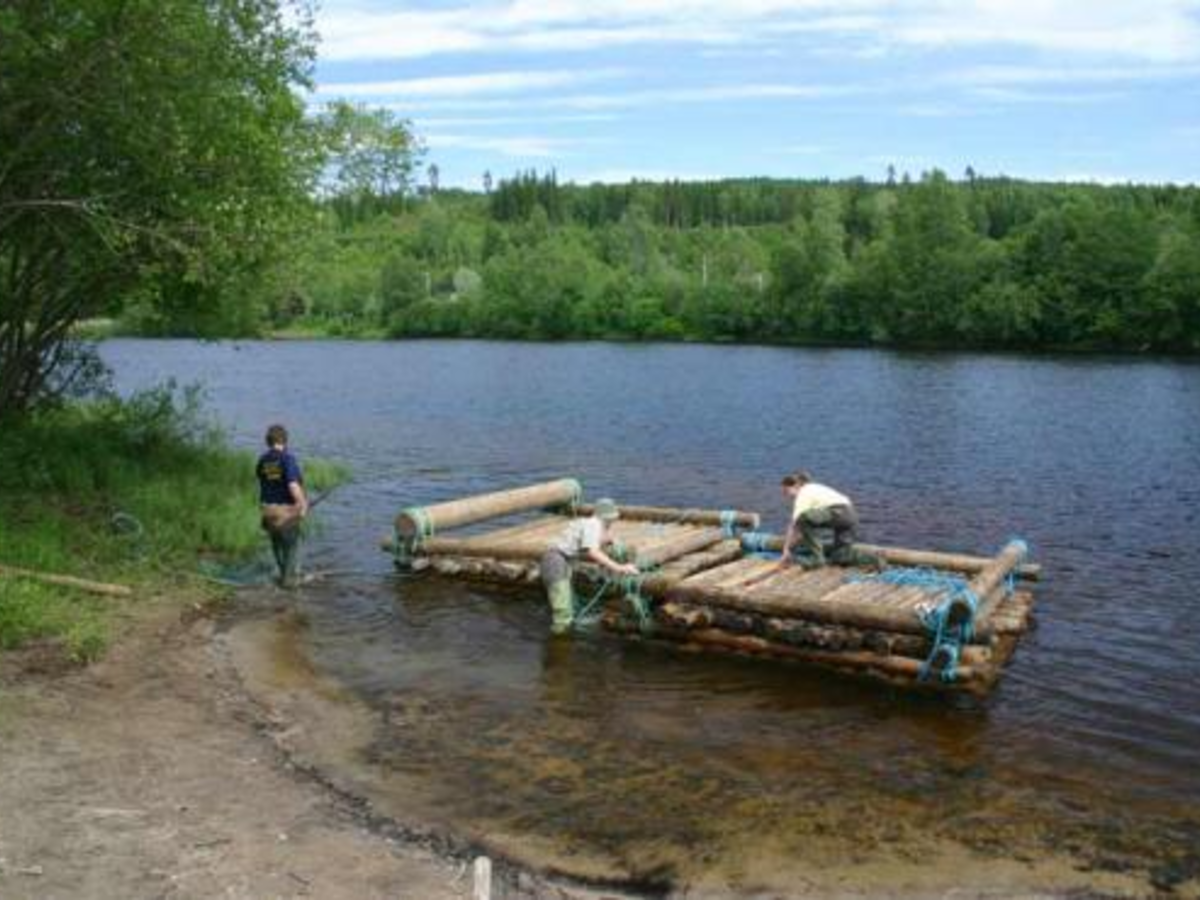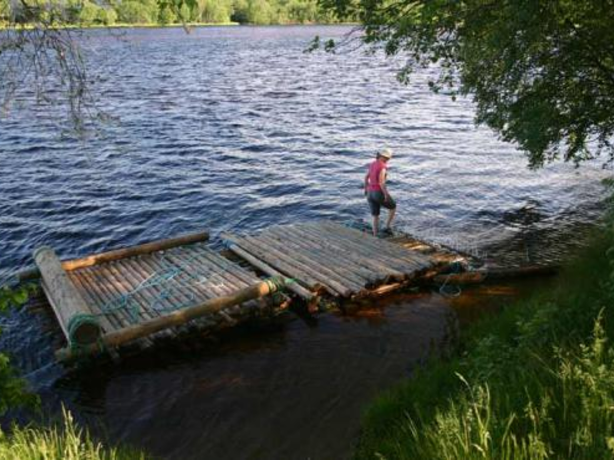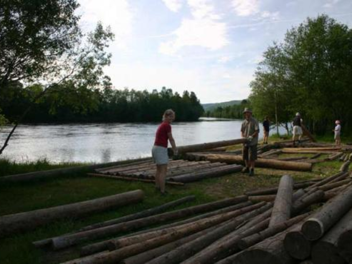 Am Nachmittag treffen wir uns in Gunnerud (ca. 95 km nördlich von Karlstad). Hier erhalten wir Ausrüstungen, Informationen zur Fahrt und üben schon die ersten Knoten an einem Übungsfloß.