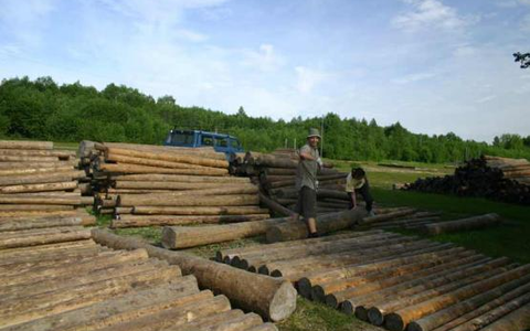 Am folgenden Tag werden wir zum etwa 50 km nördlich entlegenen Bauplatz für die Flöße gebracht. Hier erwarten uns sorgsam übereinander gestapelte 3 m lange Baumstämme. Diese sortieren wir zunächst nach Größe; das Floß wird aus drei Lagen Stämmen unterschiedlicher Größe zusammengestellt. Die dicken Stämme werden schließlich ins Wasser gerollt und mit einem halben Schlag verknotet, die Stämme der mittleren Schicht werden quer zur unteren Schicht dicht gepackt, nur noch die äußeren Stämme werden verknotet. Die oberste Schicht entsteht wie die mittlere: querliegend mit zwei festgeknoteten Randstämmen.
