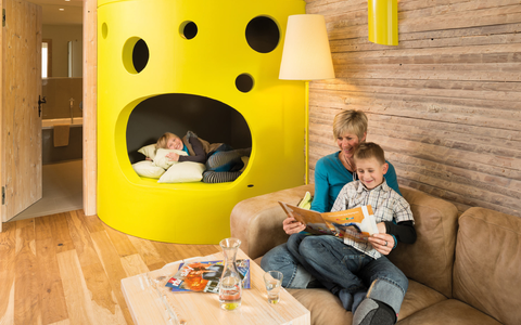 Das „Greenorama“ ist ein gutes Beispiel. Auf Idee und Konzept folgte der Bautrupp, fünf Tage später war das neugestaltete apfelgrüne Familien-Restaurant mit breiter Fensterfront fertig. Ebenfalls neu ist die Bowlingbahn für die ganze Familie sowie der Kinderhotel-Bus, der kleine und große Sportfans samt Ausrüstung in das nur wenige Meter entfernte Familien-Ski- und Wandergebiet bringt.