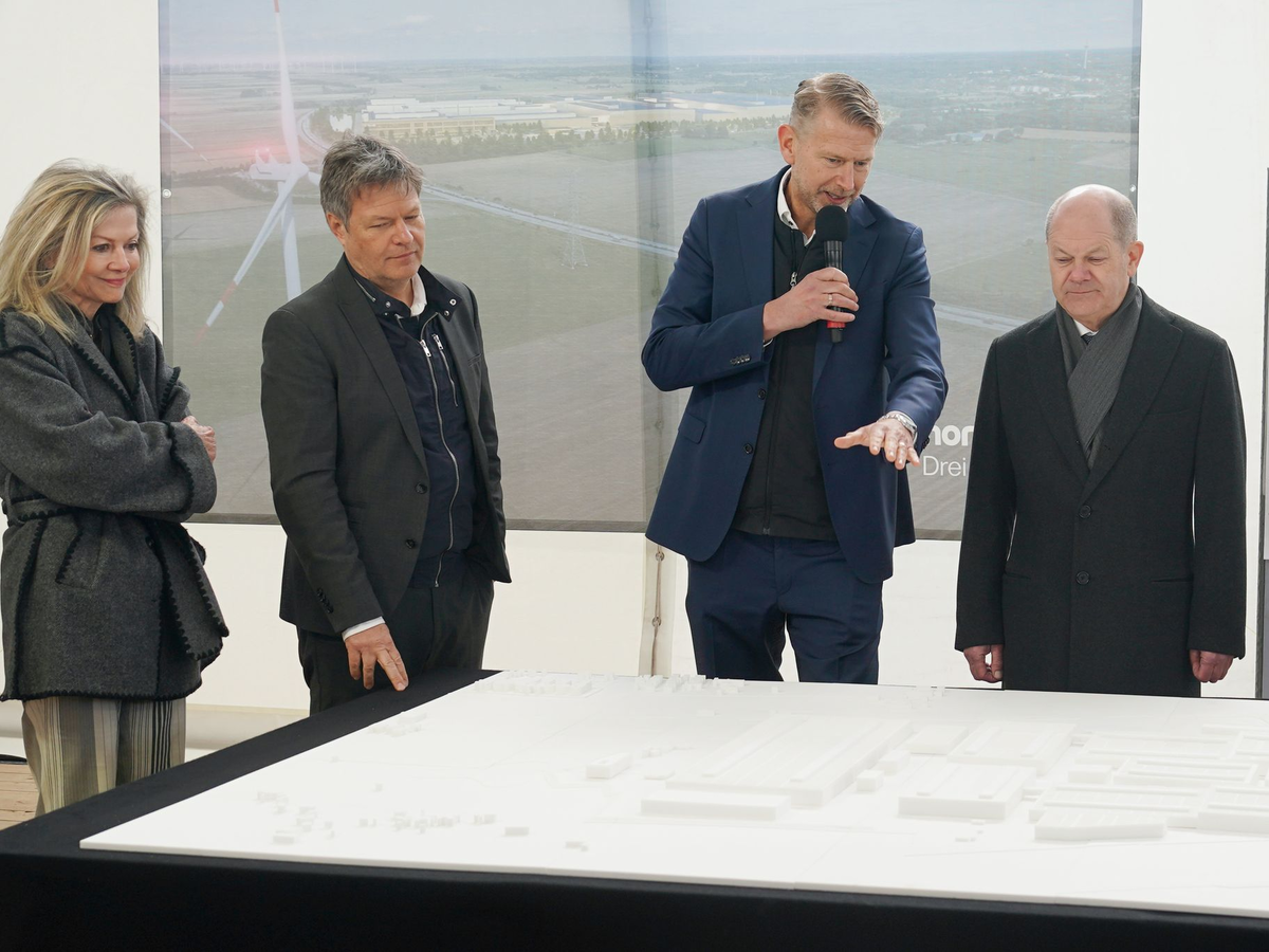 Am Vormittag sollten Scholz, Habeck und Günther gemeinsam mit Northvolt-Chef Peter Carlsson und Northvolts Deutschlandchef Christofer Haux auf dem Gelände für die Fabrik in Lohe-Rickelshof und Norderwöhrden den Startknopf für die Gründungsarbeiten für das erste Fabrikgebäude drücken. Bund und Land fördern die Batteriefabrik mit rund 700 Millionen Euro. Hinzu kommen mögliche Garantien über weitere 202 Millionen Euro, die noch bewilligt werden müssen. Die Produktion soll 2026 anlaufen.