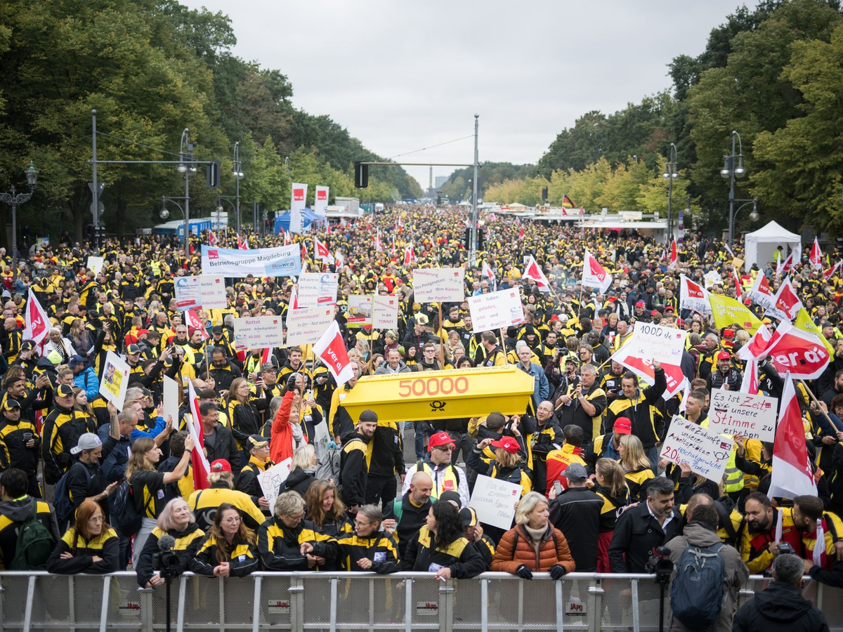 09.10.2023 - 13:11:35 | dpa.deDer Betriebsrat der Deutschen Post hat vor erheblichen Jobverlusten im Zuge der geplanten Novelle des Postgesetzes gewarnt. «Wenn der Universaldienst nicht mehr auskömmlich finanziert werden kann, dann sind mehr als zehntausend ArbeitsplĂ€tze in Gefahr», sagte Gesamtbetriebsratschef Thomas Held am Montag in Berlin. Mit Universaldienst ist gemeint, dass die Post an jedem Werktag ĂŒberall in Deutschland Sendungen zustellt. Bei einer Kundgebung vor dem Brandenburger Tor ab Montagmittag erwarteten der Betriebsrat und die Gewerkschaft Verdi mehr als 30.000 Post-BeschĂ€ftigte. Derzeit sitzt die Bundesregierung an der Reform des veralteten Postgesetzes.