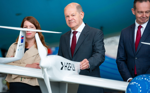 Scholz sagte weiter, klimaneutrales Fliegen solle nicht zulasten europäischer und deutscher Flughäfen und Airlines gehen. Der Kanzler sagte weiter, perspektivisch sei sicherlich der Wasserstoffantrieb auch in Serienflugzeugen möglich. Dafür wolle die Bundesregierung Tempo machen beim Aufbau der Wasserstoff-Infrastruktur. Er sei überzeugt, dass der Luftfahrtstandort Deutschland eine «sehr gute Zukunft» habe.
