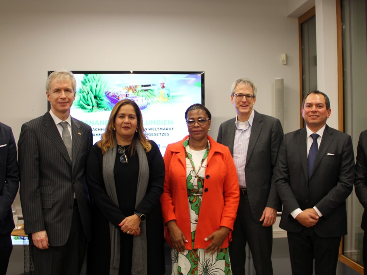 Um die RealitĂ€t der kolumbianischen Bananenindustrie aufzuzeigen, wurde im Rahmen der EinfĂŒhrung des deutschen Lieferkettengesetzes, gĂŒltig seit 2023, die Dialogrunde Bananos de Colombia entwickelt: ein nachhaltiger Weg auf den Weltmarkt, eine Basis, um die Zusammenarbeit und Beziehung der beiden LĂ€nder zu fördern und die Entwicklung der kolumbianischen lĂ€ndlichen Regionen und des Agrarsektors im Allgemeinen zu stĂ€rken.