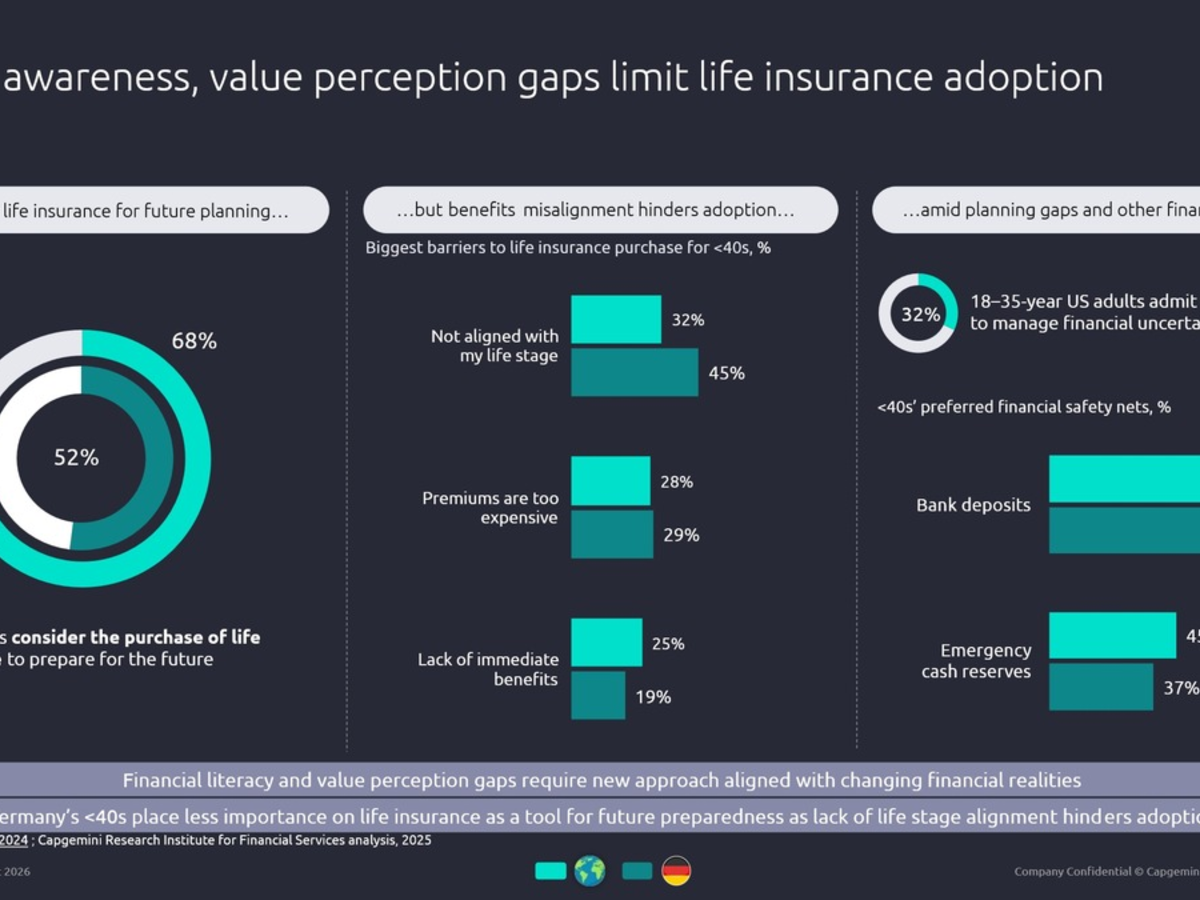 Die Lebensversicherungsbranche steht vor einer zentralen Herausforderung, da die nächste Generation ihrer Kunden Lebensmeilensteine neu definiert. Die gemeinsame Studie von Capgemini und Limra zeigt, dass Verbraucher unter 40 Jahren heute die traditionellen Faktoren für den Abschluss einer Lebensversicherung hinauszögern oder ganz überspringen: 64 Prozent der deutschen Befragten haben keine unmittelbaren Heiratspläne und 84 Prozent der Singles und Verheirateten haben derzeitig keinen Kinderwunsch.
