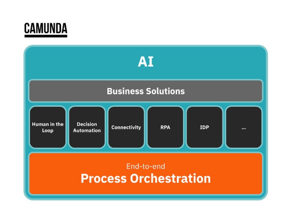 Viele Unternehmen haben aufgabenorientierte Einzellösungen in ihre IT-Landschaft implementiert, was zu einer unübersichtlichen und isolierten Systemlandschaft führt. Dies hindert Unternehmen daran, den vollen Nutzen aus ihrer Automatisierung zu ziehen, und macht es schwer, effizient zu sein und sich schnell an Veränderungen anzupassen. Camunda setzt weiterhin primär auf End-to-End-Prozessorchestrierung und erlaubt mit den neuen Automatisierungsfunktionen zusätzlich die Wahl einer maßgeschneiderten Architektur für die Bedürfnisse von Kund:innen - sei es eine Best-of-Breed-Lösung, eine Mischlösung oder eine vollständig von Camunda betriebene End-to-End-Automatisierungslösung.