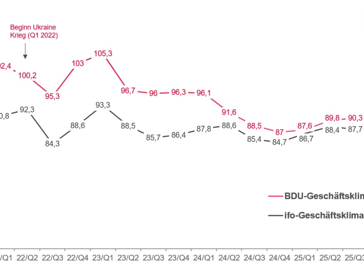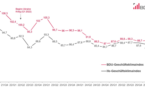 Der an die Systematik des ifo-Instituts angelehnte BDU-GeschÀftsklimaindex (GKI) erscheint quartalsweise und bildet die aktuelle wirtschaftliche Lage und die Erwartungen der Branche an die geschÀftliche Entwicklung ab.