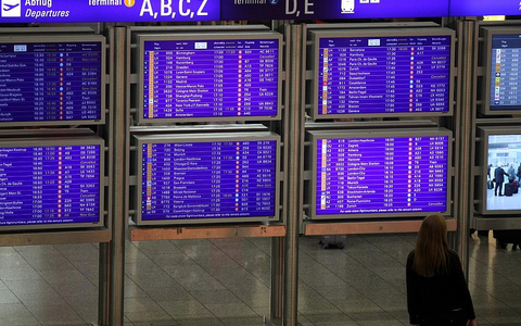 Frau vor Informationstafel am Frankfurter Flughafen - Foto: via dts Nachrichtenagentur