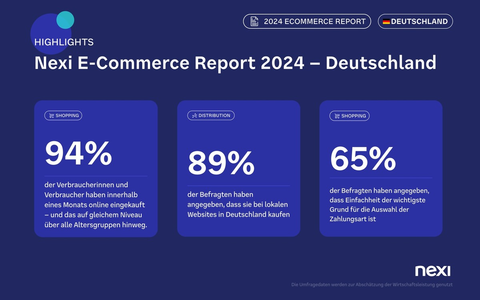 Der Nexi E-Commerce Report 2024 basiert auf über 2.600 repräsentativen Interviews in Deutschland. Die Befragung wurde im Auftrag von Nexi von Teleperformance durchgeführt. Er ist Teil einer paneuropäischen Erhebung mit insgesamt über 28.000 Teilnehmenden zwischen 18-79 Jahren in 11 Ländern.