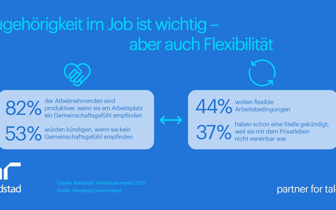 "Unser Arbeitsbarometer zeigt: Das Gefühl von Gemeinschaft und Zugehörigkeit ist ein entscheidender Erfolgsfaktor für Beschäftigte und Unternehmen - und die Präsenz im Büro macht dabei einen wichtigen Unterschied, aber nicht ohne den richtigen Mix an Flexibilität", resümiert Richard Jager, CEO DACH Randstad: "Ein Signal für Arbeitgeber, den Austausch mit ihren Mitarbeitenden zu intensivieren, um individuelle Lösungen zu entwickeln. Einfach nur Back to Office anzuordnen, ist kein Garant für gesteigerte Produktivität."