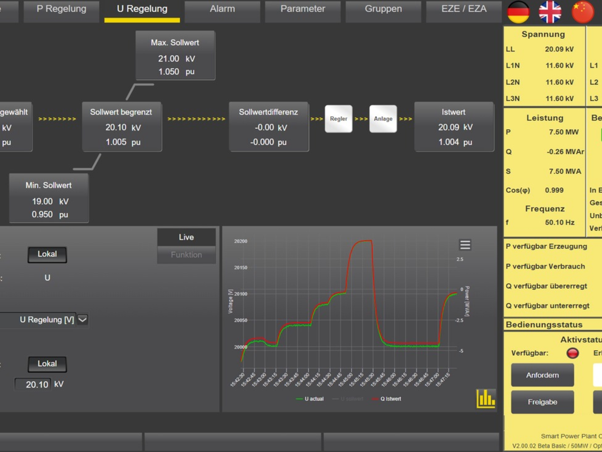 Die neuen Funktionalitäten wurden in der Inbetriebnahme- und Monitoring-Visualisierung ergänzt. Ab sofort ist der EZA (Energieerzeugungsanlagen)-Regler zudem vollständig in Wind Power SCADA von Bachmann integrierbar.