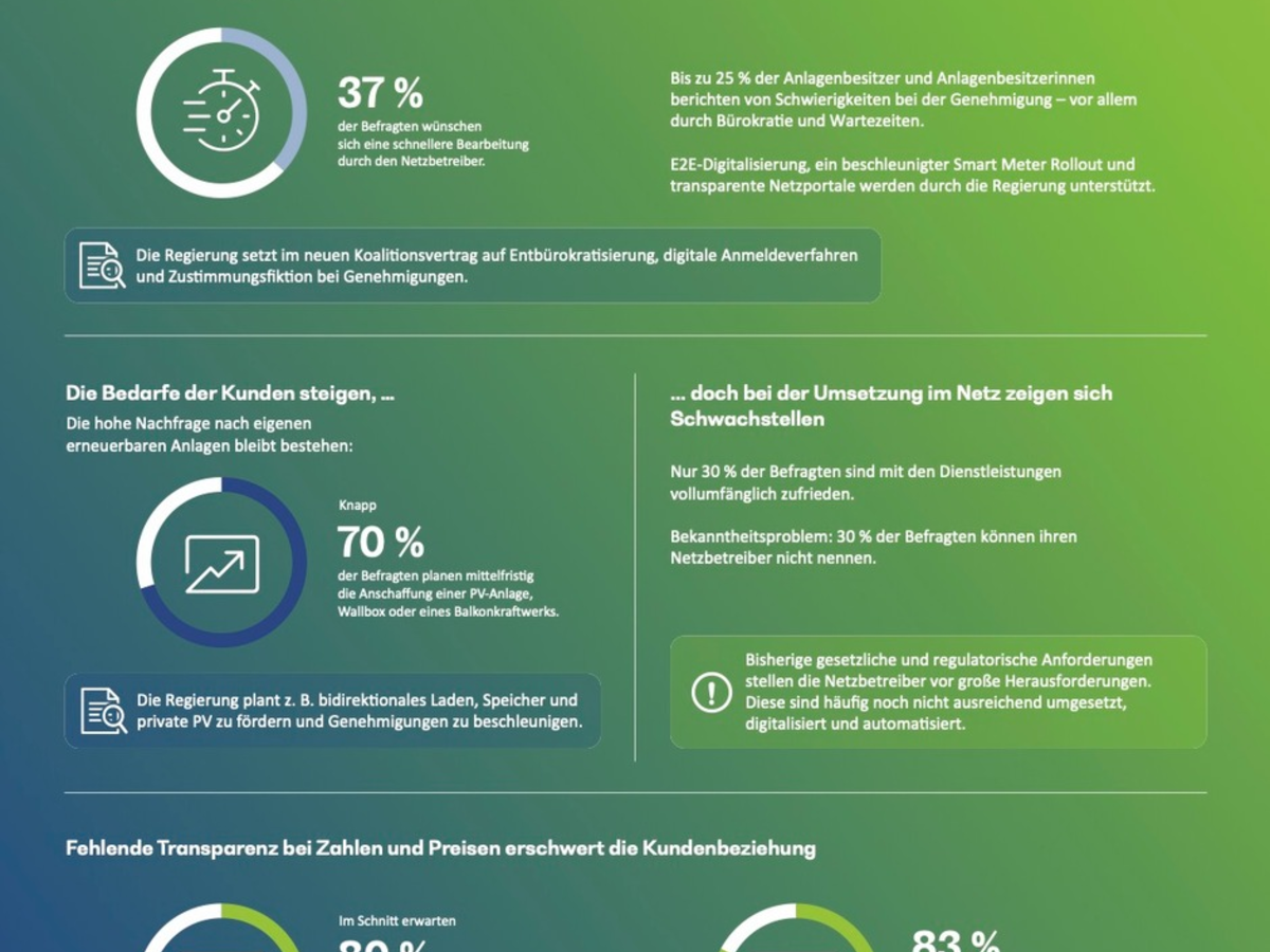 Die Untersuchung analysiert Kundenerwartungen und vergleicht sie mit den Zielen des Koalitionsvertrags. Sie zeigt konkrete Handlungsfelder auf, um Netzbetreiber als Enabler der Energiewende zu stärken.