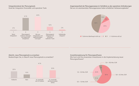 Trotz der Verfügbarkeit bewährter Planungsmethoden wie Rolling Forecasts, Szenarioplanung sowie kapazitätsgebundener und -ungebundener Planung bleibt deren Verbreitung begrenzt. Weniger als ein Drittel der Befragten nutzt Rolling Forecasts, und mehr als die Hälfte integriert operative und finanzielle Planungsergebnisse nicht miteinander. Entsprechend sehen 56 Prozent der Unternehmen erheblichen Verbesserungsbedarf bei ihren Planungsergebnissen, und nur 8 Prozent sind vollständig zufrieden mit ihrem aktuellen Planungsansatz.