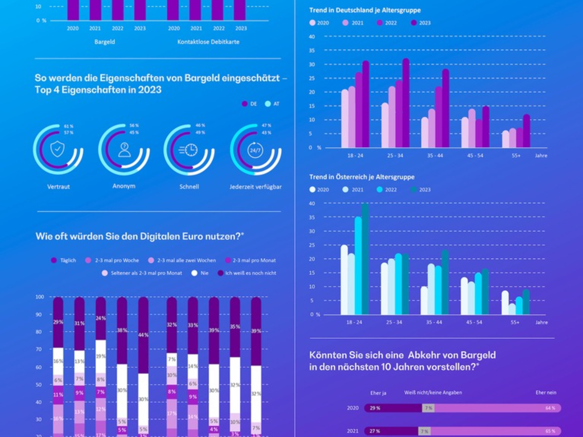 Die Nutzungshäufigkeit von Bargeld ist im Vergleich zu den Vorjahren gestiegen. In Deutschland ist mit derzeit 71 Prozent ein klarer, ansteigender Trend über die letzten drei Jahre ersichtlich. In Österreich ist mit 79 Prozent die Häufigkeit der Bargeldnutzung gegenüber dem Vorjahr wieder gestiegen, der Rückgang der Nutzungshäufigkeit von Bargeld wurde damit beendet.