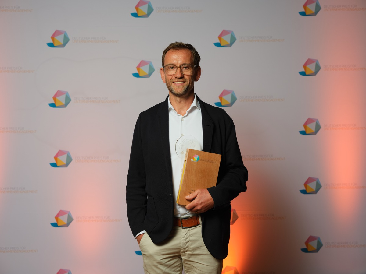 Mit dem Deutschen Preis für Unternehmensengagement werden in diesem Jahr erstmalig Unternehmen unterschiedlichster Größen und Branchen ausgezeichnet, die sich strategisch und in Partnerschaft mit der Zivilgesellschaft für Chancengerechtigkeit, Teilhabe, Demokratie und Klimaschutz einsetzen. Verliehen wurde der Preis von der UPJ, einem Netzwerk für Unternehmensverantwortung und gesellschaftlichem Engagement.