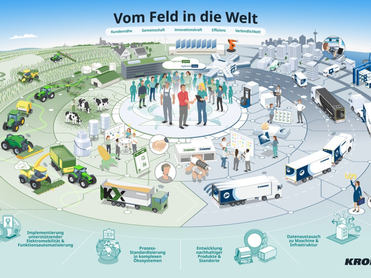 Vom Feld in die Welt / KRONE Group und Big Pictury visualisieren die Strategie 2030 mit einem wegweisenden Big Picture für die Zukunft