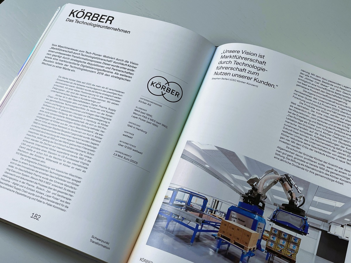 02.12.2024 - 11:10:03 | presseportal.deErst seit 2020 vereint Körber mehr als 40 Einzelmarken unter einer globalen Marke und positioniert sich erfolgreich als "Heimat für Unternehmer". Der in Deutschland gegründete Technologiekonzern ist inzwischen global in den Geschäftsfeldern Digital, Pharma, Supply Chain und Technologies aktiv und bietet ein umfassendes Technologieportfolio, das von der Konstruktion und Fertigung von Maschinen und Anlagen über operative Software bis hin zu KI-gestützten Lösungen zur Effizienzsteigerung in der industriellen Fertigung und Lieferketten reicht. Körber fokussiert sich auf kundenzentriertes, unternehmerisches Denken und setzt dieses in Erfolge für seine Kunden um.