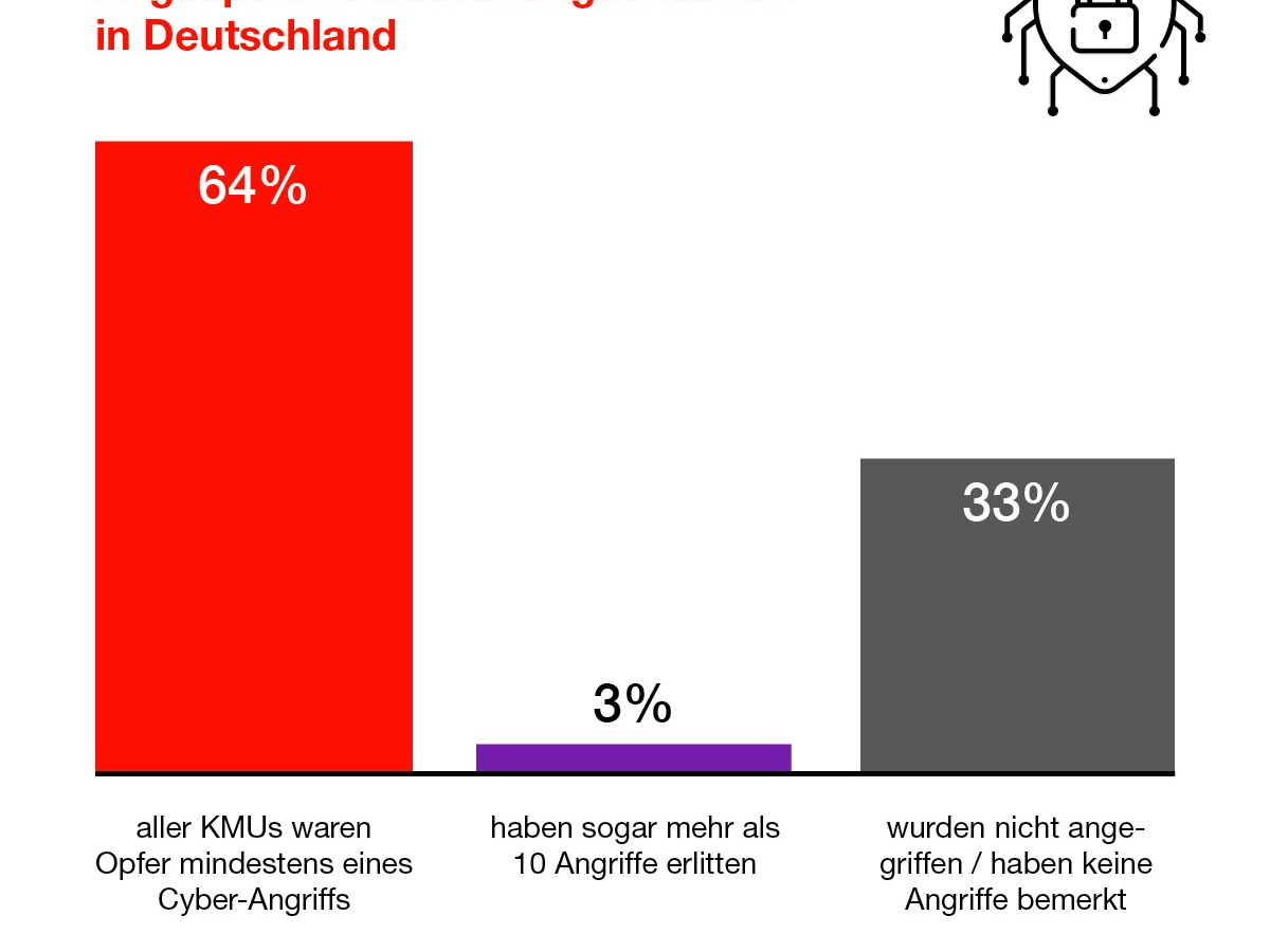 Bislang verfügen lediglich 40 Prozent der befragten Unternehmen über eine eigenständige Cyber-Versicherung. 38 Prozent gaben an, dass sie Cyber-Risiken im Rahmen einer anderen Police abgedeckt haben. Weitere 14 Prozent planen den Abschluss einer Cyber-Police. Damit sind aktuell sechs von zehn KMUs in Deutschland nicht oder nicht ausreichend gegen Cyber-Gefahren abgesichert.