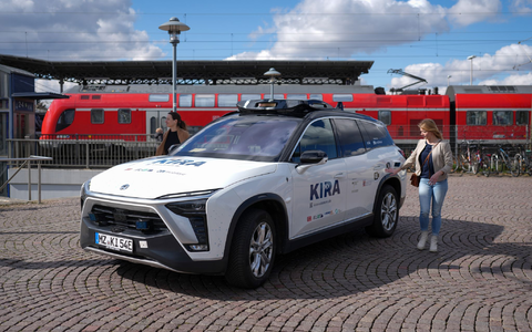 Den Angaben zufolge ist es das erste Mal bundesweit, dass Fahrgäste des öffentlichen Nahverkehrs in selbstfahrenden Autos mitfahren. Während der Testphase ist noch ein Sicherheitsfahrer an Bord, um im Notfall eingreifen zu können. Ansonsten fährt das Auto autonom, überwacht wird es dabei von einer Leitstelle.