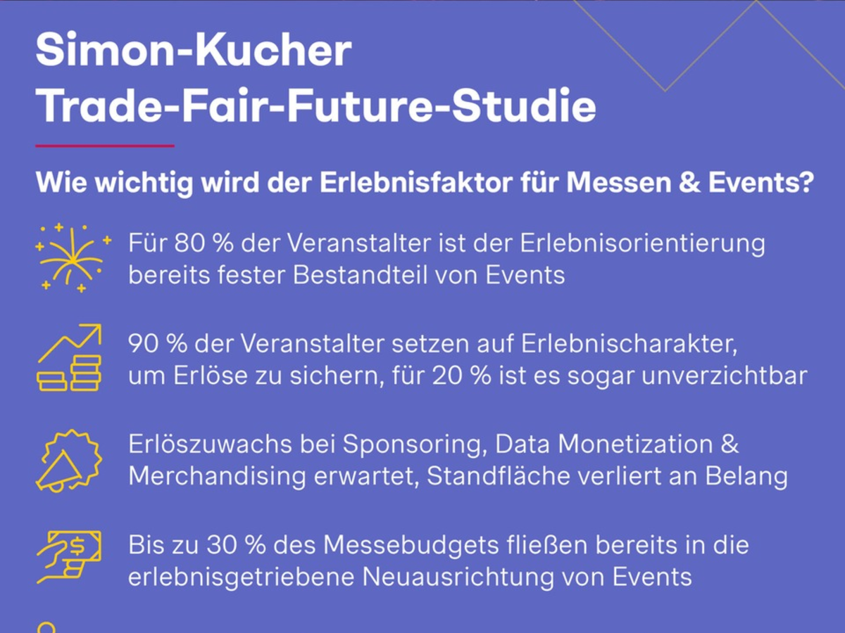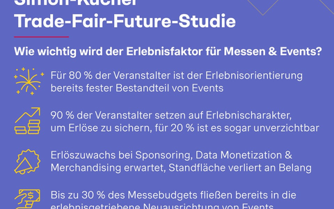 "Der Wandel ist tiefgreifend", betont Becker. "Zukünftig entscheidet nicht mehr die Quadratmeterzahl, sondern die Qualität des Messeerlebnisses. Veranstalter müssen neue Partnerschaften eingehen, um wirtschaftlich zu wachsen." Kein Wunder also, dass bereits jetzt bis zu 30 Prozent des Messebudgets in die erlebnisgetriebene Neuausrichtung von Events fließen. "Perspektivisch werden die Investitionen für Festivalisierung dramatisch steigen, um durch optimierte Dienstleistungen den Erlebnischarakter von Messen zu pushen!"