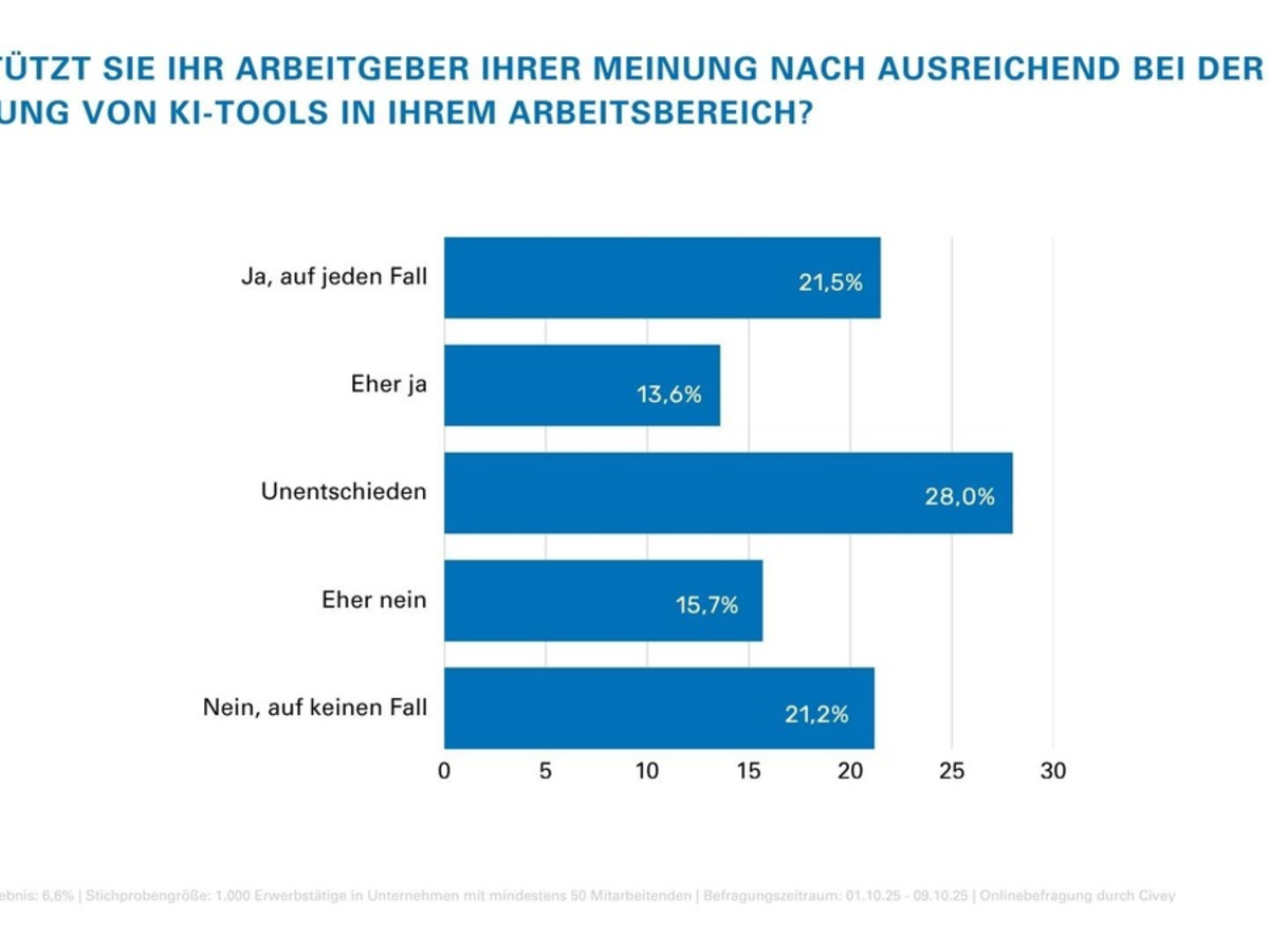 Über die Civey-Umfrage: Online-Umfrage vom 01.10. bis 09.10.2025 unter 1.000 Erwerbstätigen in Unternehmen mit mindestens 50 Beschäftigten.