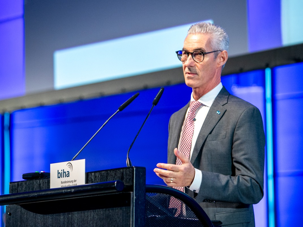 Gastredner Dr. Stefan Zimmer, Vorstandsvorsitzender des Bundesverbandes der Hörsysteme-Industrie (BVHI) und GeneralsekretĂ€r der EuropĂ€ischen Vereinigung der Hörsystemhersteller (EHIMA), schilderte aktuelle Entwicklungen zum Thema kĂŒnstliche Intelligenz (KI) und fokussierte insbesondere die Interaktion zwischen KI und dem Hörakustiker-Handwerk. Der KI fehle es nicht nur an Empathie im Umgang mit den Kunden, ihr fehle es zudem an FlexibilitĂ€t, sich auf verĂ€ndernde und mitunter widersprĂŒchliche PrĂ€ferenzen bei der Hörsystemanpassung einzustellen. Um diese Defizite auszugleichen, bedĂŒrfe es der FachkrĂ€fte und vor allem der Auszubildenden. "Wir, die Hörsystemhersteller, sehen uns als Teil der Gleichung, die zur Lösung fĂŒhrt", betonte Zimmer.