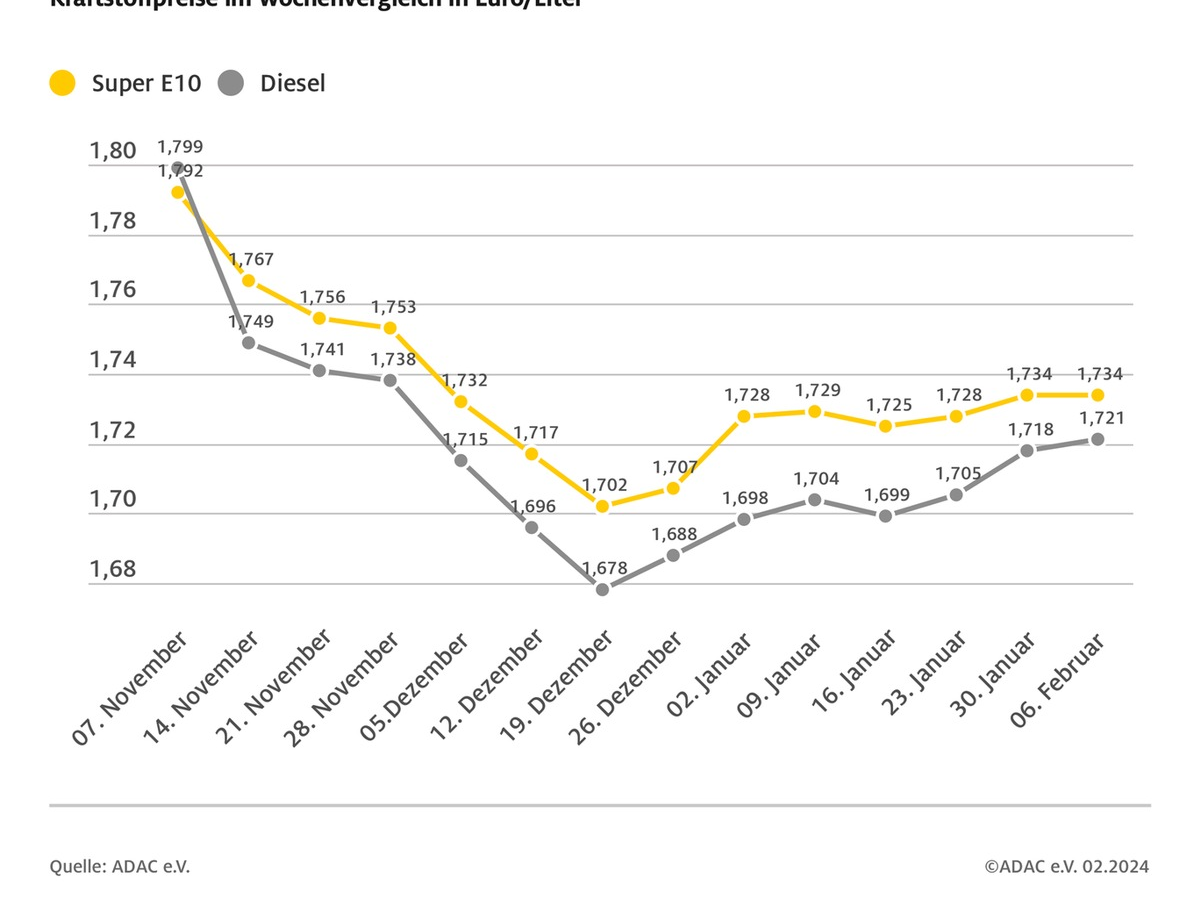 Der Rohölpreis ist um gut vier US-Dollar gesunken. Ein Barrel der für den europäischen Markt relevanten Sorte Brent kostet aktuell rund 79 US-Dollar, nach fast 83 Dollar vor einer Woche. Diese für Autofahrer erfreuliche Entwicklung mindert der im Vergleich zur Vorwoche etwas schwächere Euro. Dennoch befindet sich der Preis für Super E10 nach Ansicht des ADAC aktuell noch in einem angemessenen Bereich. Dagegen besteht bei Dieselkraftstoff weiterhin Potenzial für Preissenkungen.