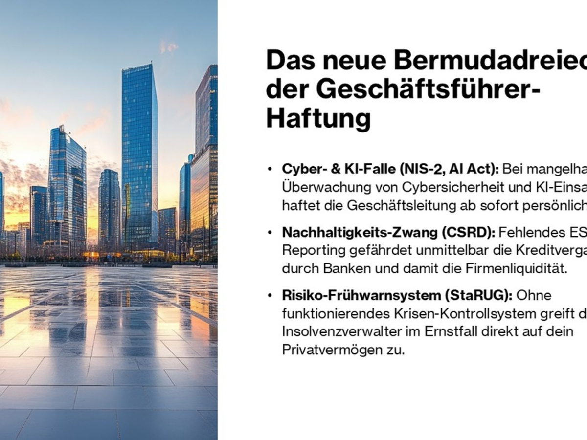 Das Bermudadreieck 2026: Warum Geschäftsführern eine historische Haftungswelle droht / Wie C-Level-Entscheider das Organisationsverschulden bei AI Act, NIS-2 & StaRUG vermeiden