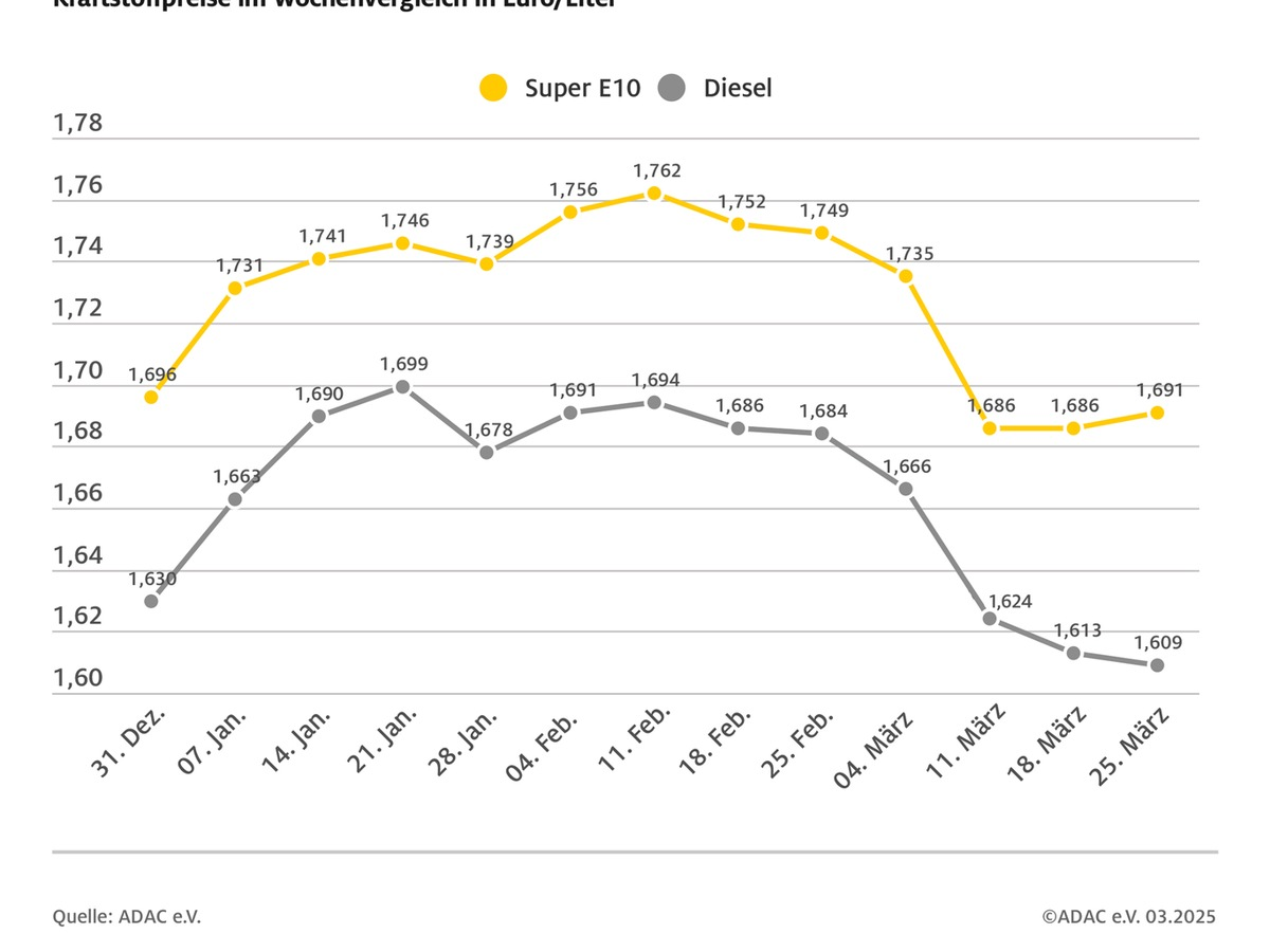 Ausführliche Informationen zum Kraftstoffmarkt und aktuelle Preise gibt es unter www.adac.de/tanken.