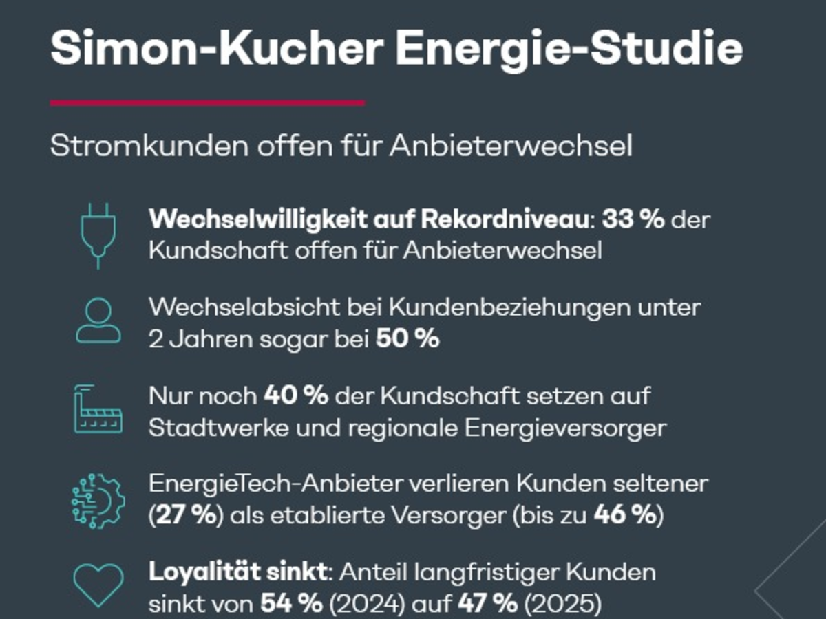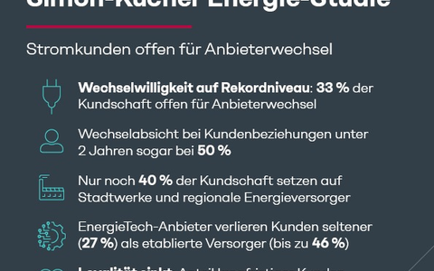 Energie-Studie: Jeder dritte Stromkunde offen für Anbieterwechsel - nur noch ein Drittel setzt auf Stadtwerke und regionale Versorger