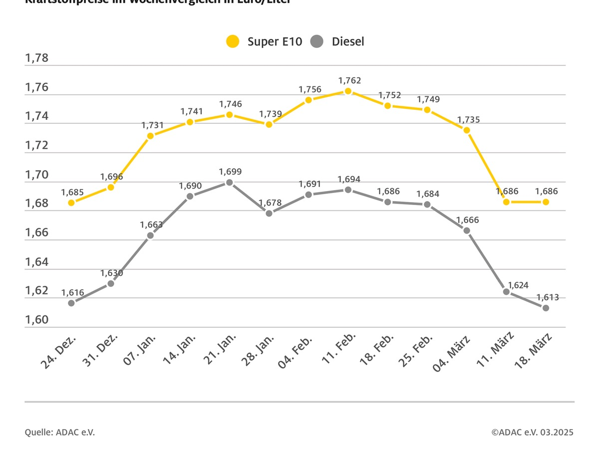Ausführliche Informationen zum Kraftstoffmarkt und aktuelle Preise gibt es unter www.adac.de/tanken.