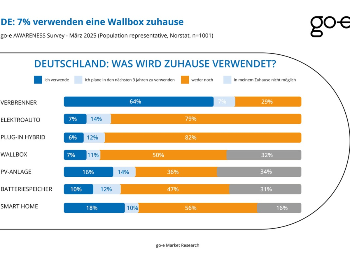 Auch der Trend zur Energiewende und zum CO2-neutralen Laden hĂ€lt an. 6,9% der Befragten, also die groĂe Mehrheit der E-Auto-Fahrer, geben an, zum Laden ihres E-Autos eine Wallbox zu nutzen. Damit belegt die Umfrage, dass, unabhĂ€ngig vom Ausbau der öffentlichen Ladeinfrastruktur das Zuhause-Laden mit einer AC Wallbox derzeit die wichtigste StĂŒtze im Hochlauf der ElektromobilitĂ€t in Deutschland ist. 16% der Befragten haben zu Hause eine Photovoltaik-Anlage, und weitere 14% möchten in den nĂ€chsten Jahren eine solche errichten. Auch die Nutzung von Batteriespeichern fĂŒr das Eigenheim gewinnt an Bedeutung - bereits 10% der Befragten speichern ihre mit Sonnenkraft erzeugte Energie, um sie je nach Bedarf zu nutzen.