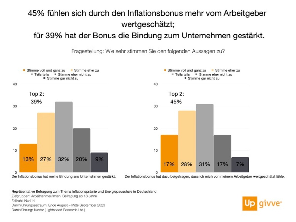 *Über die Studie: Die repräsentative Befragung zum Thema Inflationsprämie wurde von Kantar (Lightspeed Research Ltd.) im Auftrag von givve bei 670 Arbeitnehmerinnen und Arbeitnehmern durchgeführt (August/September 2023).