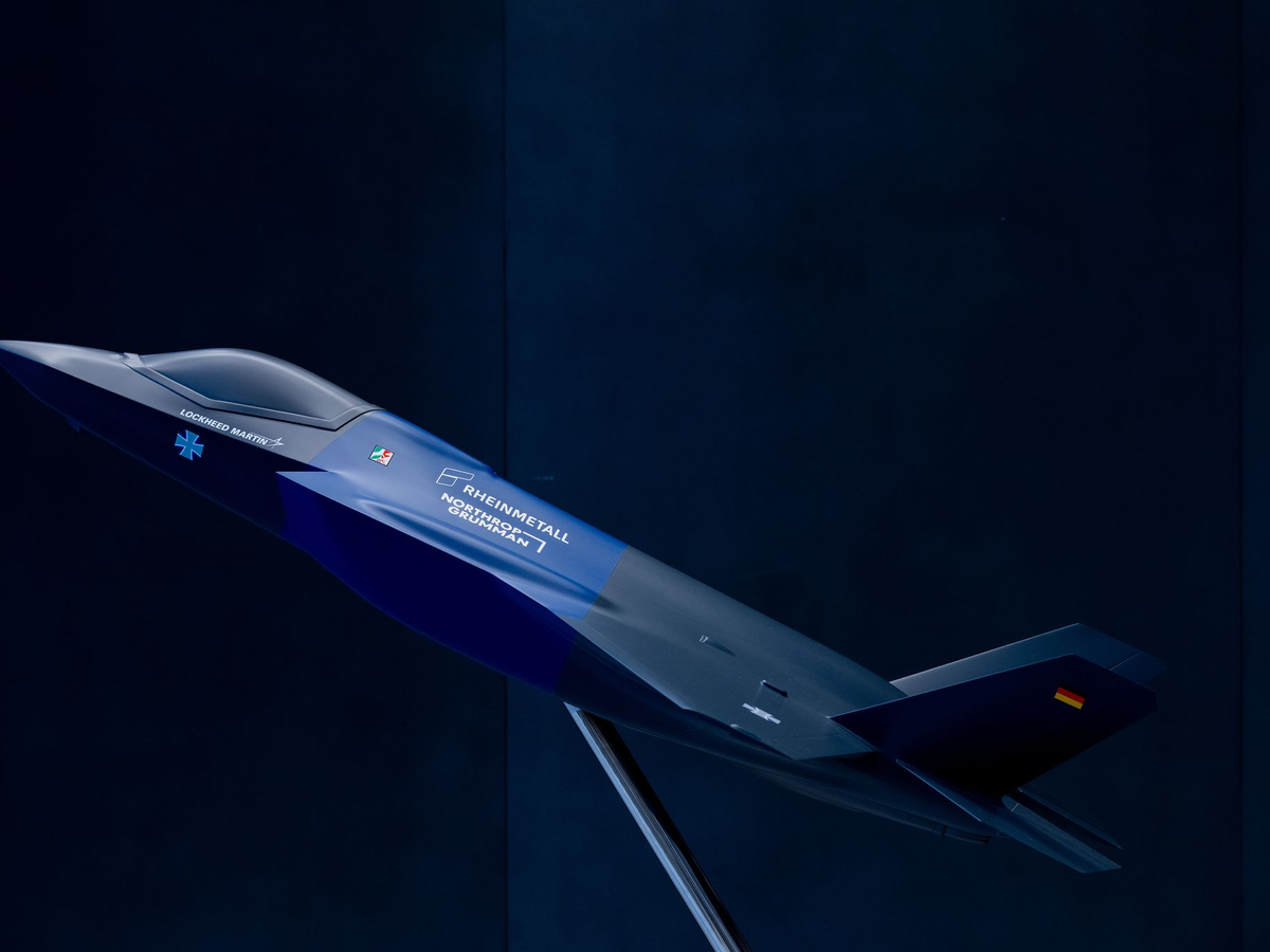 Ein Modell des US-Tarnkappenbombers F35, für den Rheinmetall in Weeze das Rumpfmittelteil baut. - Foto: Rolf Vennenbernd/dpa